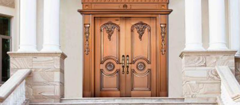銅材具有質地溫潤,耐腐蝕,抗氧化,不變形等優(yōu)良特性?,F(xiàn)代銅門根據(jù)銅材 固有特性結合古今之工藝,融合東西理念,加之現(xiàn)代技術與手工的完美結合使其具有 外觀典雅莊重,氣質渾厚,使用安全方便的特性,不僅僅是表面的豪華,更是一種 文化底蘊的彰顯,身份地位的象征!